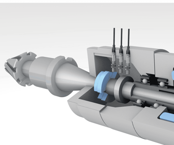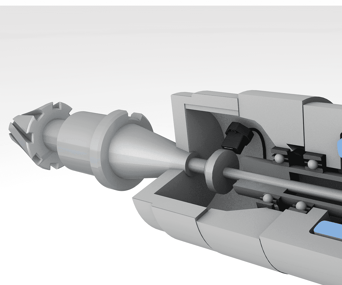 バルーフの誘導型クランプ位置センサ BIPは、工作機械の主軸へ直接搭載され、内部のドローバーと連動して動く金属の突起の位置を監視します。