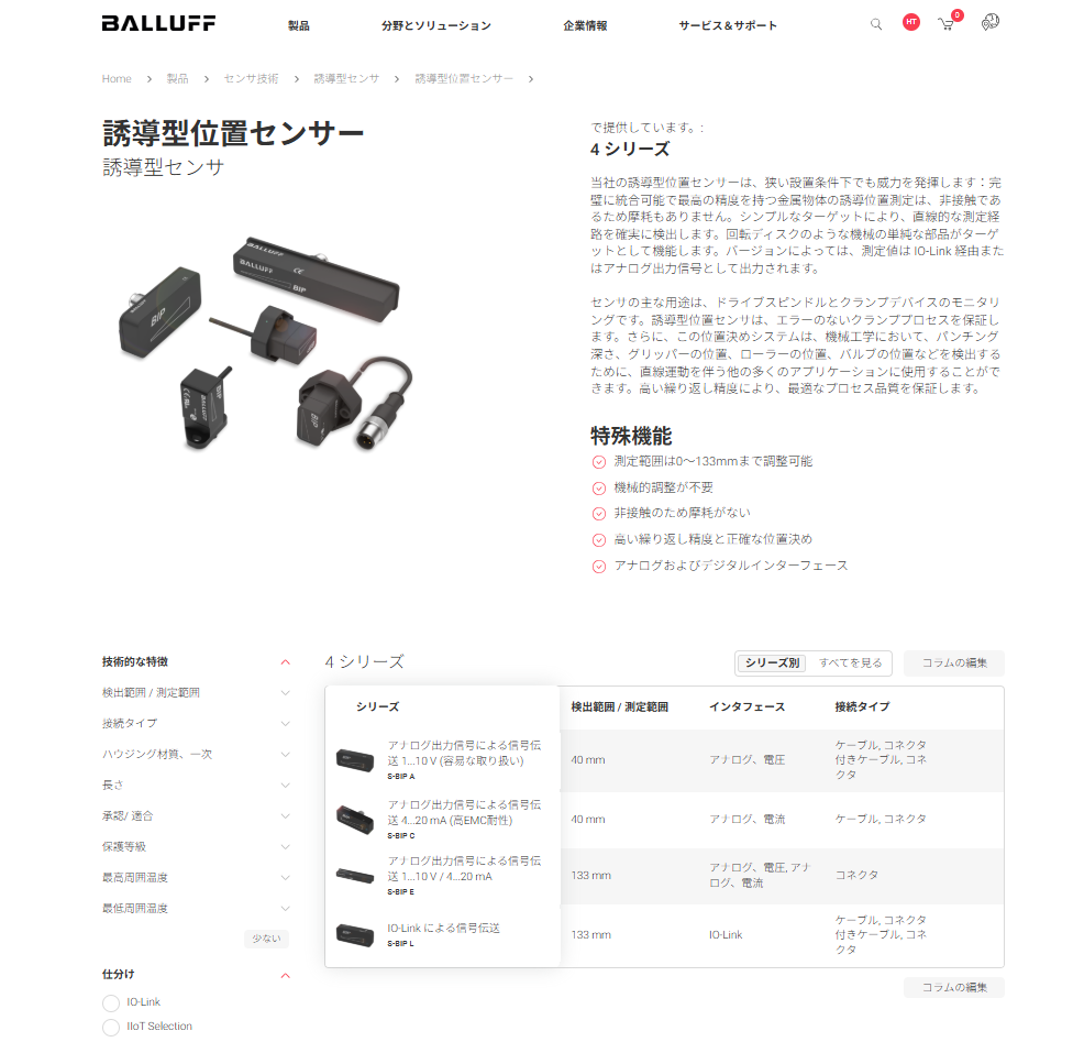 BIPは様々な形状と出力信号、14 mm ~ 133 mmの測定範囲のタイプを取り揃えています。